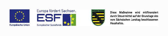 Mit Unterstützung der Europäischen Union, des Europaischen Sozialfonds, dem Europäischen Fonds für regionale Entwicklung und dem Freistaat Sachsen dürfen unsere Mitarbeiter an verschiedenen Weiterbildungsmaßnahmen zur Weiterqualifizierung und Entwicklung teilnehmen.